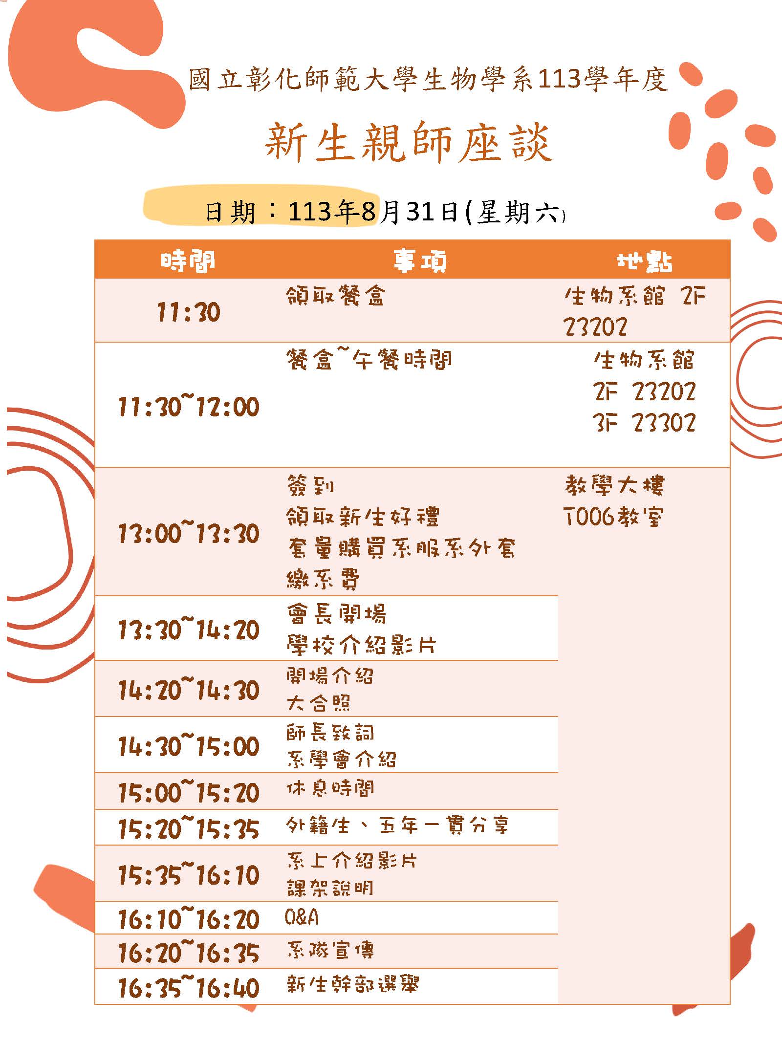 | 系所公告 | 生物學系113學年度新生親師座談活動 |