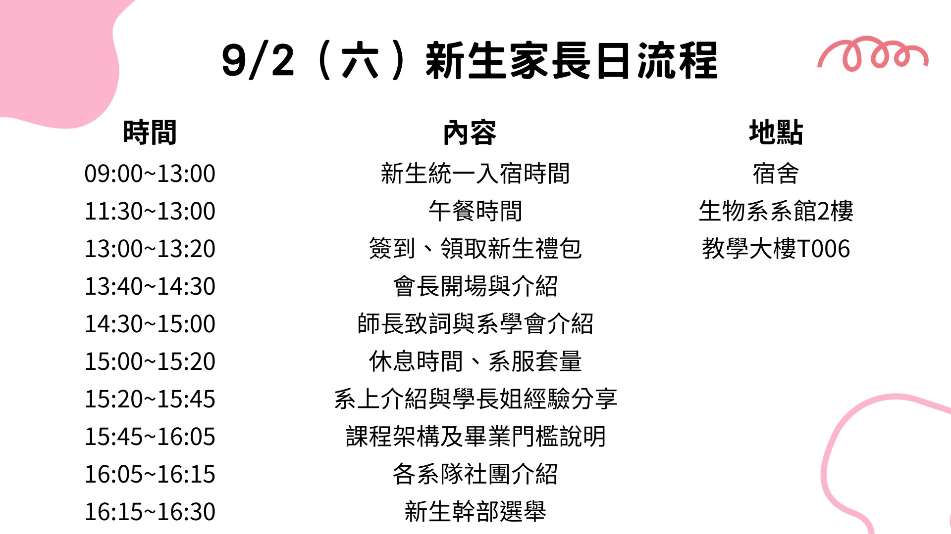 | 系所公告 | 9/2新生搬宿舍及親師座談流程 |